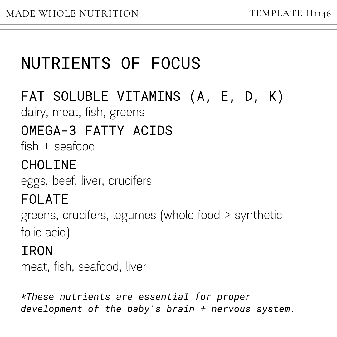 *These nutrients are essential for proper development of the baby's brain + nervous system.