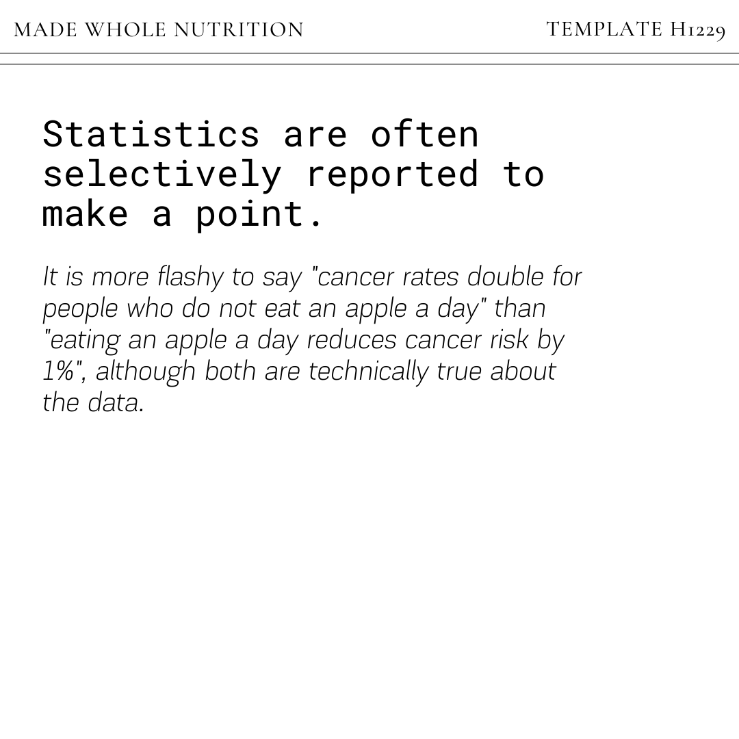 number needed to treat: 100 people need to eat an apple a day to prevent cancer in 1 person